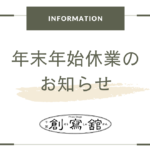 2024年12月24日 / 最終更新日時 : 2024年12月28日 soushakan お知らせ・ご案内 年末年始のお知らせ 今年も残すところあとわずかとなりました。 2024年もご愛顧いただき、誠にありがとうございました。